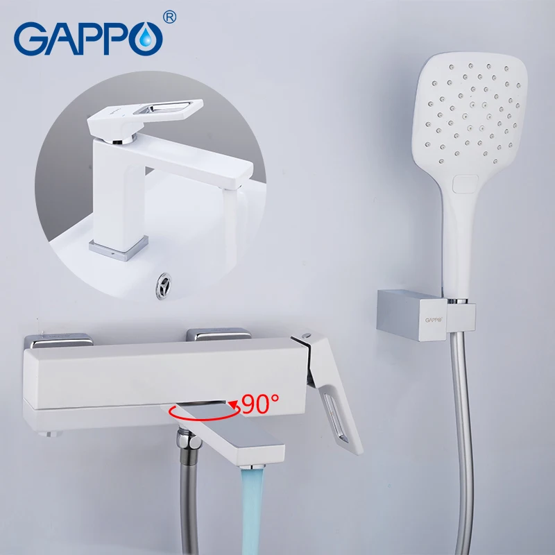 صور من GAPPO حوض الحنفيات صنبور ماء نحاسي الكروم والأبيض حنفية الحمام خلاط حوض الحنفية مع حوض صنبور الحمام أدوات دش
