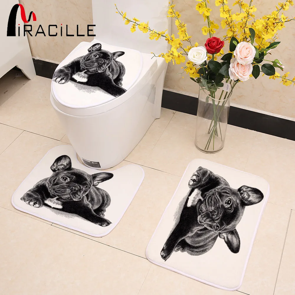 المنتجات ذات الصلة ل Bath و Miracille لطيف أسود الفرنسية البلدغ الطباعة 3 قطعة/المجموعة المرحاض غطاء مقعد حمام داخلي عدم الانزلاق المرجان الصوف الطابق حصيرة ديكور الحمام