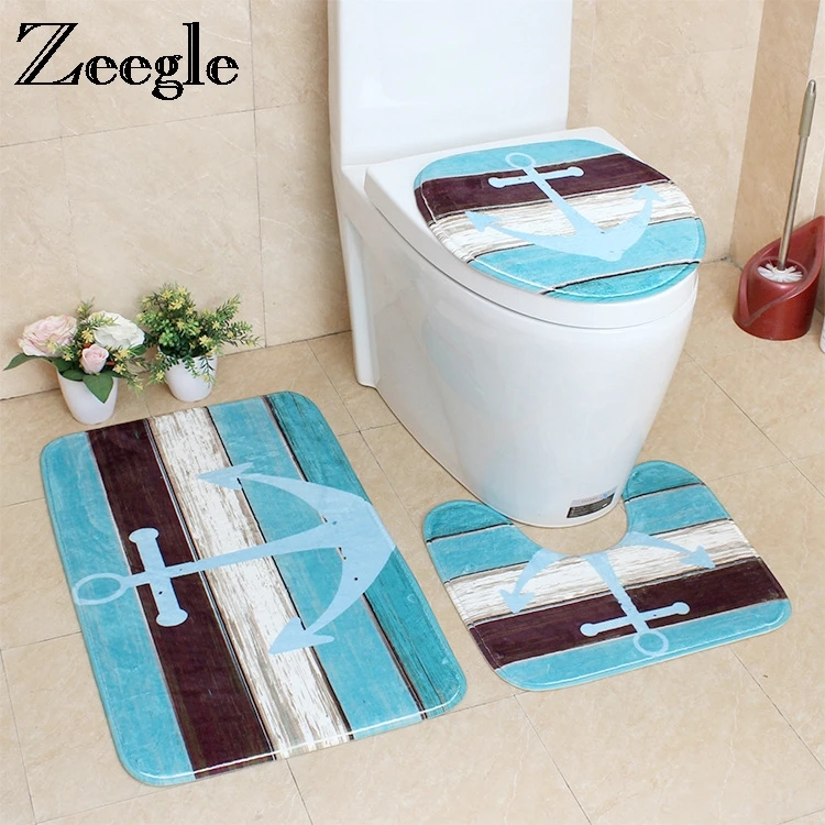 صور من Zeegle 3 قطعة الحمام حصيرة الفانيلا السجاد الحمام سجادة ضد الإنزلاق ل غطاء مرحاض غطاء حمام السجاد ماصة الحمام البساط سجادة استحمام